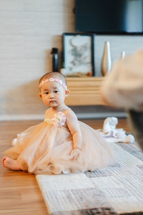 生まれた日はご夫婦の結婚記念日の日。私たちのもとに来てくれたあの日から、日々はもっと色濃く鮮やかに、そして夫婦の大切な日はさらに愛おしい日になった。選び取りは、カード等ではなく、1歳までの間で赤ちゃんが好きになってきたものに置き換えて。撮影中、初めての歯が「こんにち歯」しているのにも気付き、ご夫婦が視線を合わせて微笑む瞬間も。いくつものエピソードとともに、1歳のお祝いの記憶が家族で語り継がれますように*